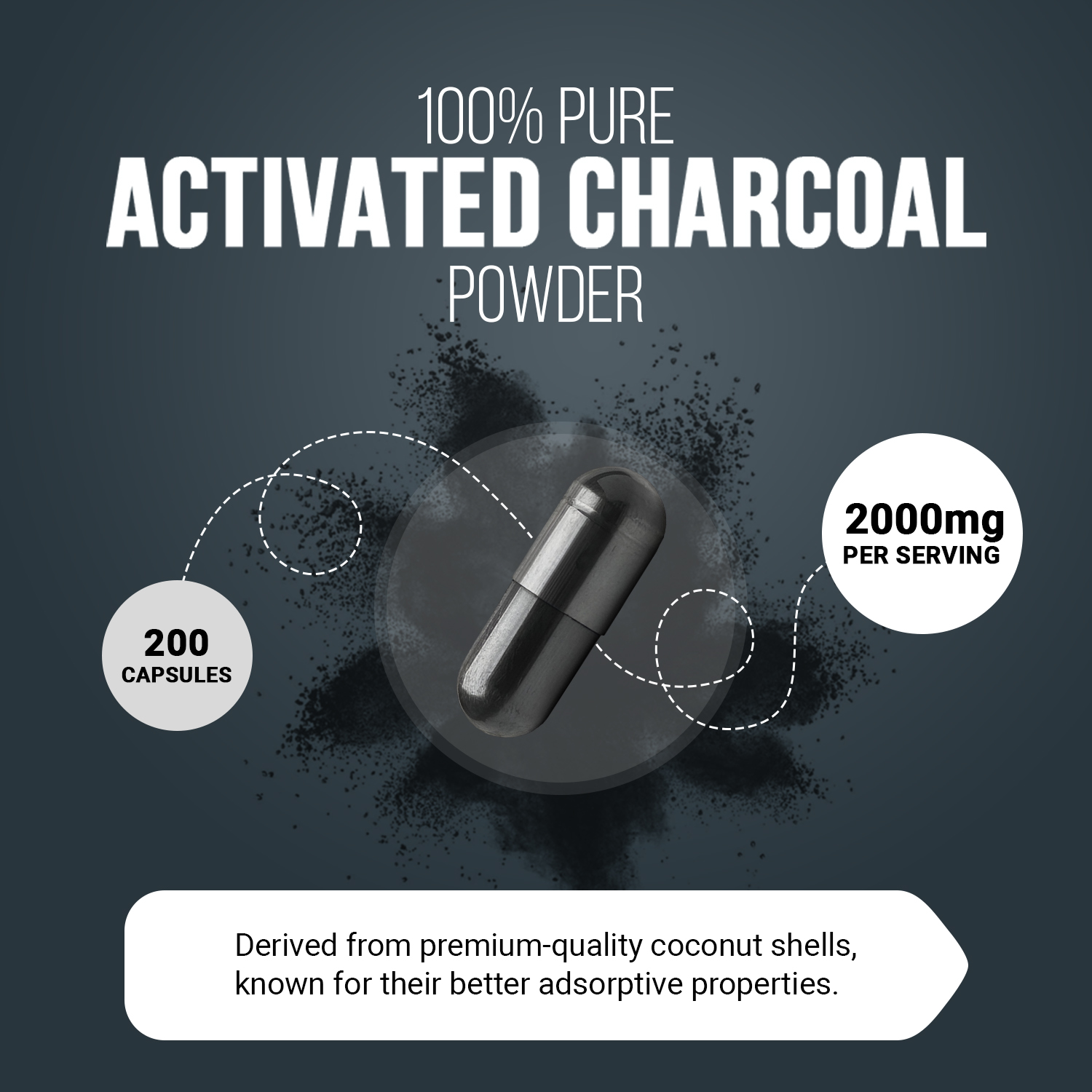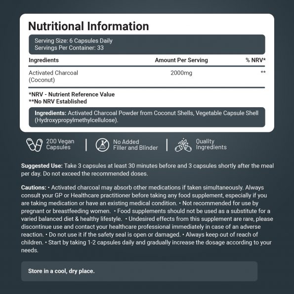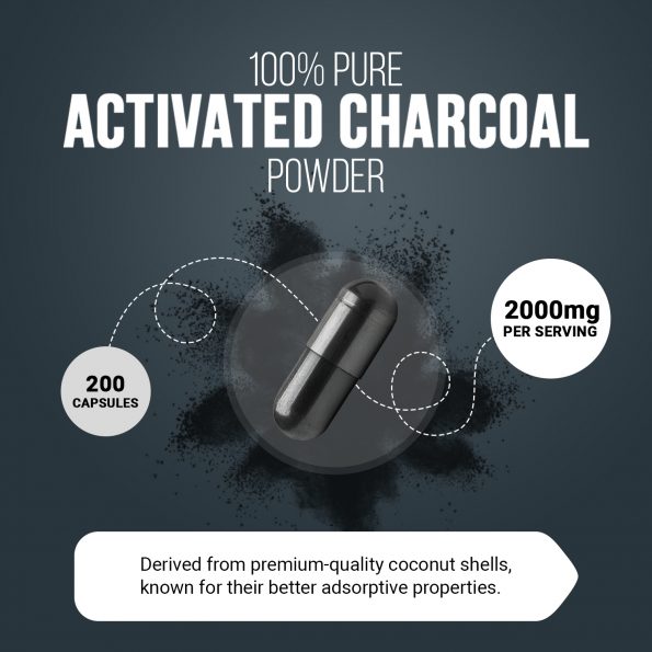 - 2000MG HIGH-POTENCY ACTIVATED CHARCOAL: Each serving delivers a powerful 2000mg of 100% pure activated charcoal, offering maximum strength for optimal benefits. Derived from premium-quality coconut shells, known for their better adsorptive properties.