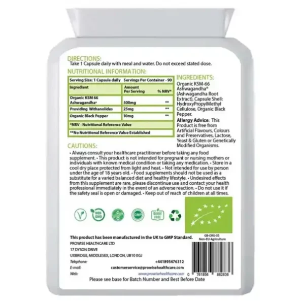 SOIL ASSOCIATION CERTIFIED ORGANIC: Being organically certified by the Soil Association guarantees you a chemical free product which is 100% natural for your body and the environment. There are higher regulatory standards we have to meet to attain certification but we do this to guarantee you get a safe, high quality and effective ashwagandha supplement. Organic provides solutions to many problems, offering truly sustainable food for growing population, in a way that works with nature.