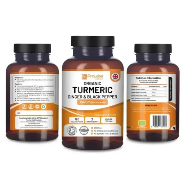 Quality Control & Premium Ingredients – We take pride in full quality control right from Blending till Follow up testing Prowise Turmeric Capsules are formulated by healthcare professionals and produced to high quality control standards following GMP guidelines. Prowise Healthcare easy to swallow capsules contain Turmeric powder with Black Pepper (Piperine) and Ginger, to increase the absorption of Curcumin (active ingredient in Turmeric).